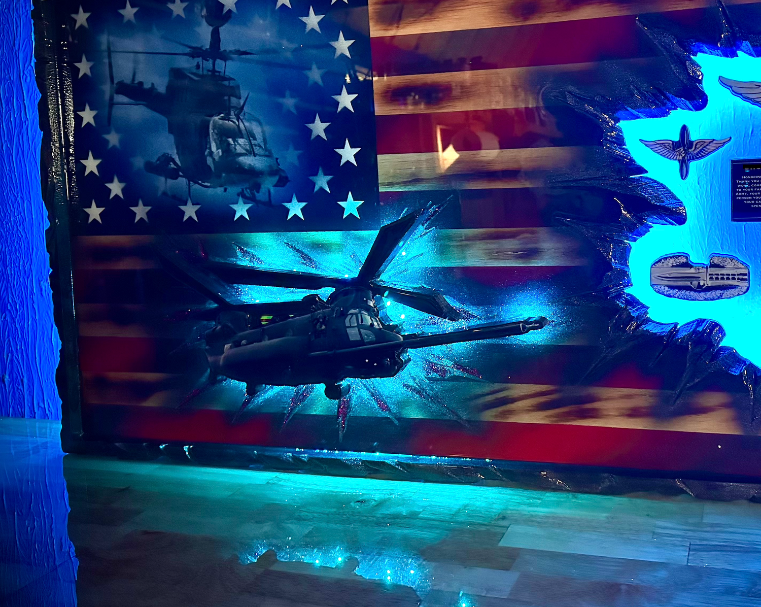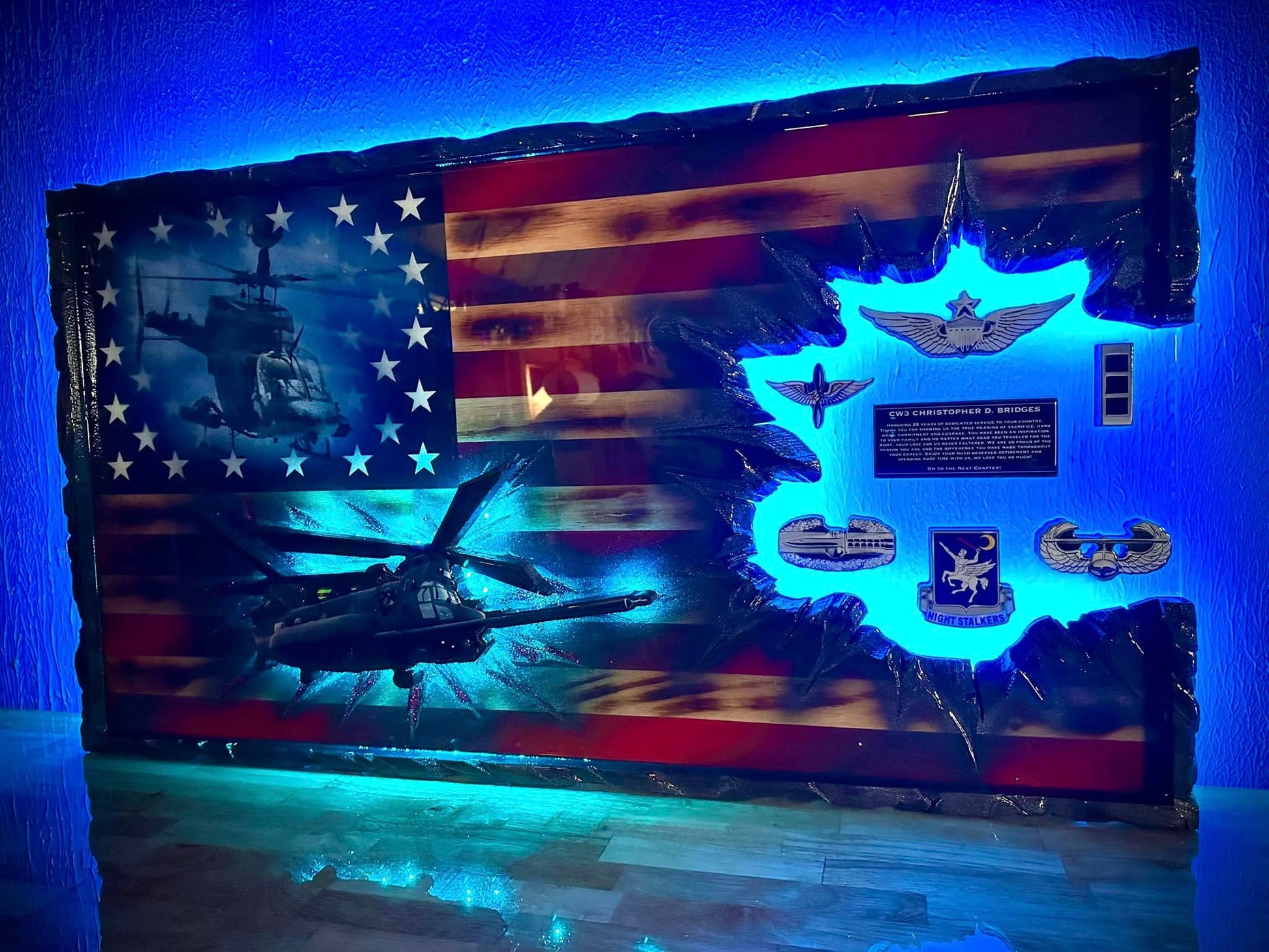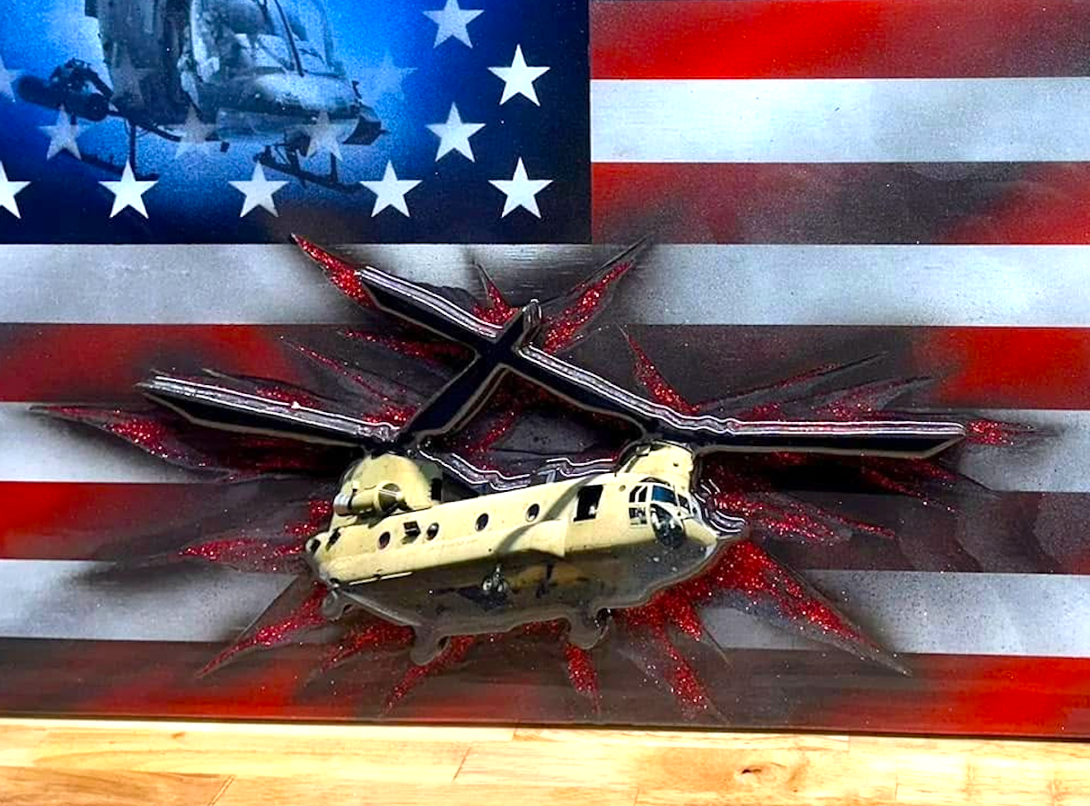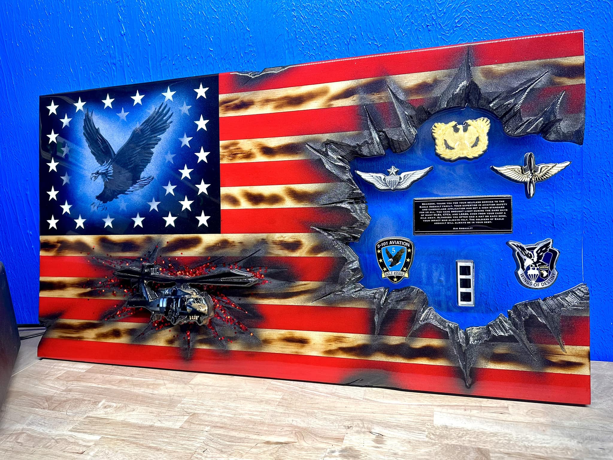 I can create a 3D version of your aircraft or vehicle of choice, burned into the flag with a slick "ember" effect around the edges!