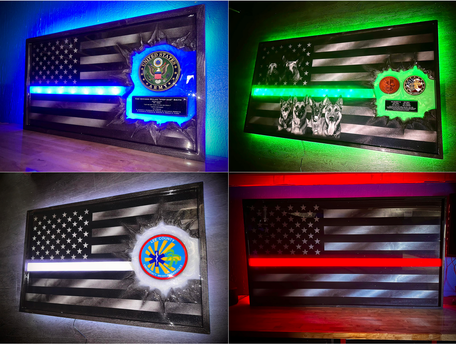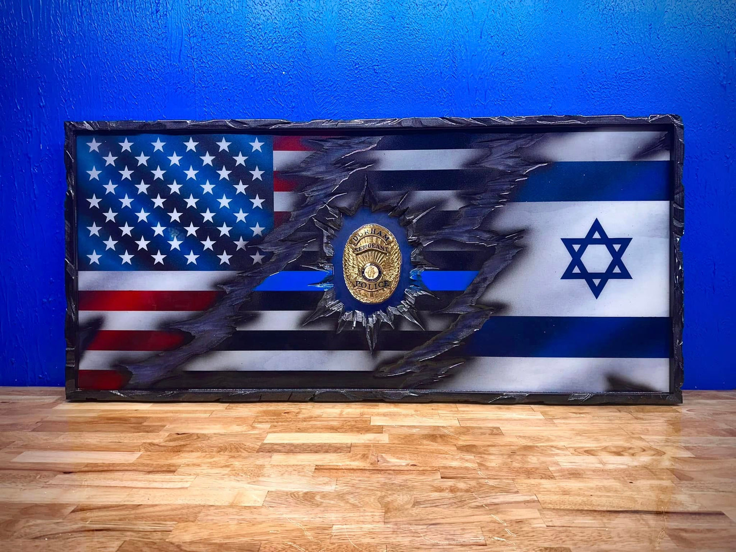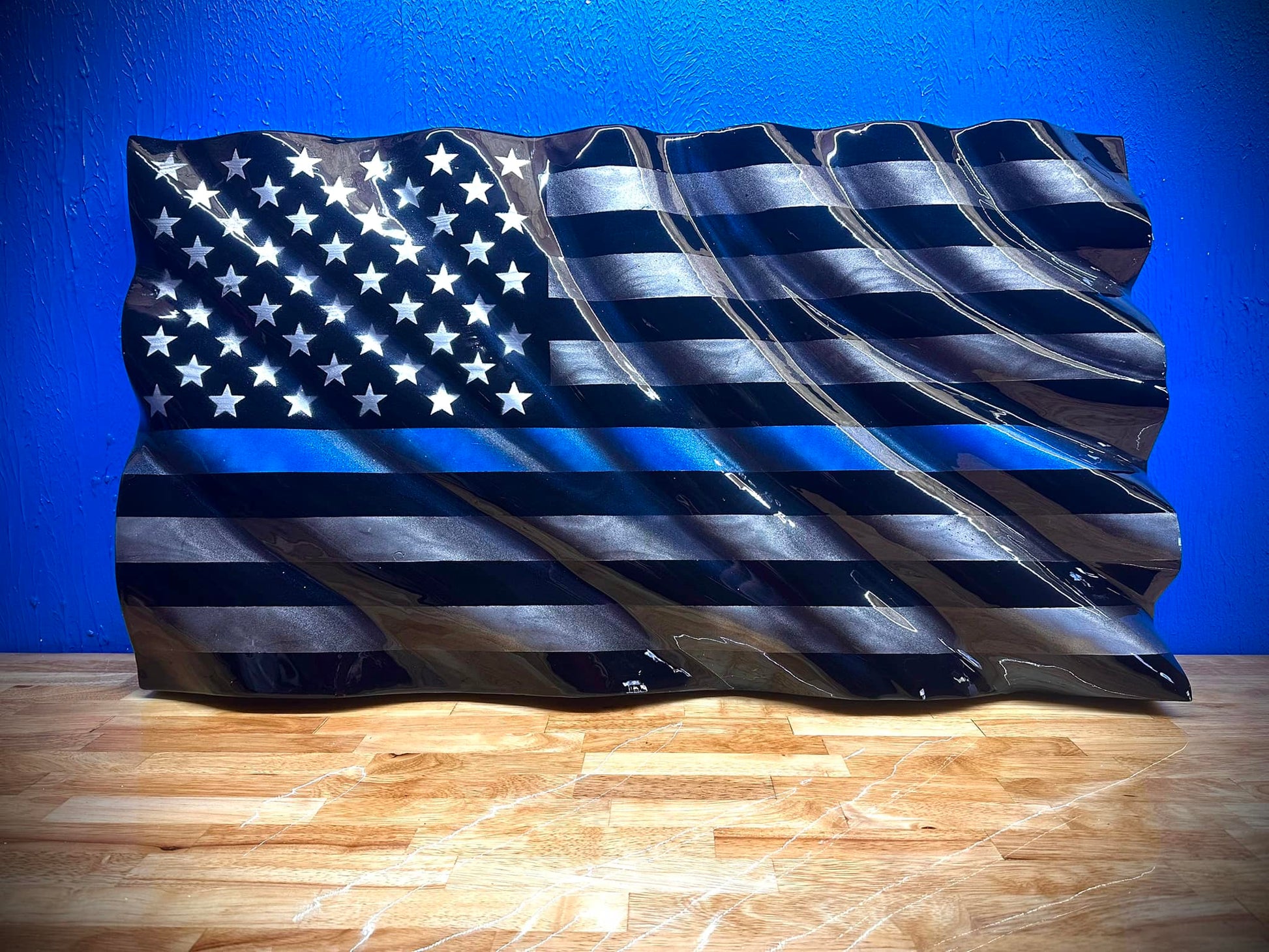 Midnight Thin Blue Line WAVY Wooden American Flag - Handmade, NO CNC, Made In America by an Army Veteran.
